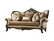 89" Tan Polyester Blend Curved Floral Sofa And Toss Pillows With Brown Legs