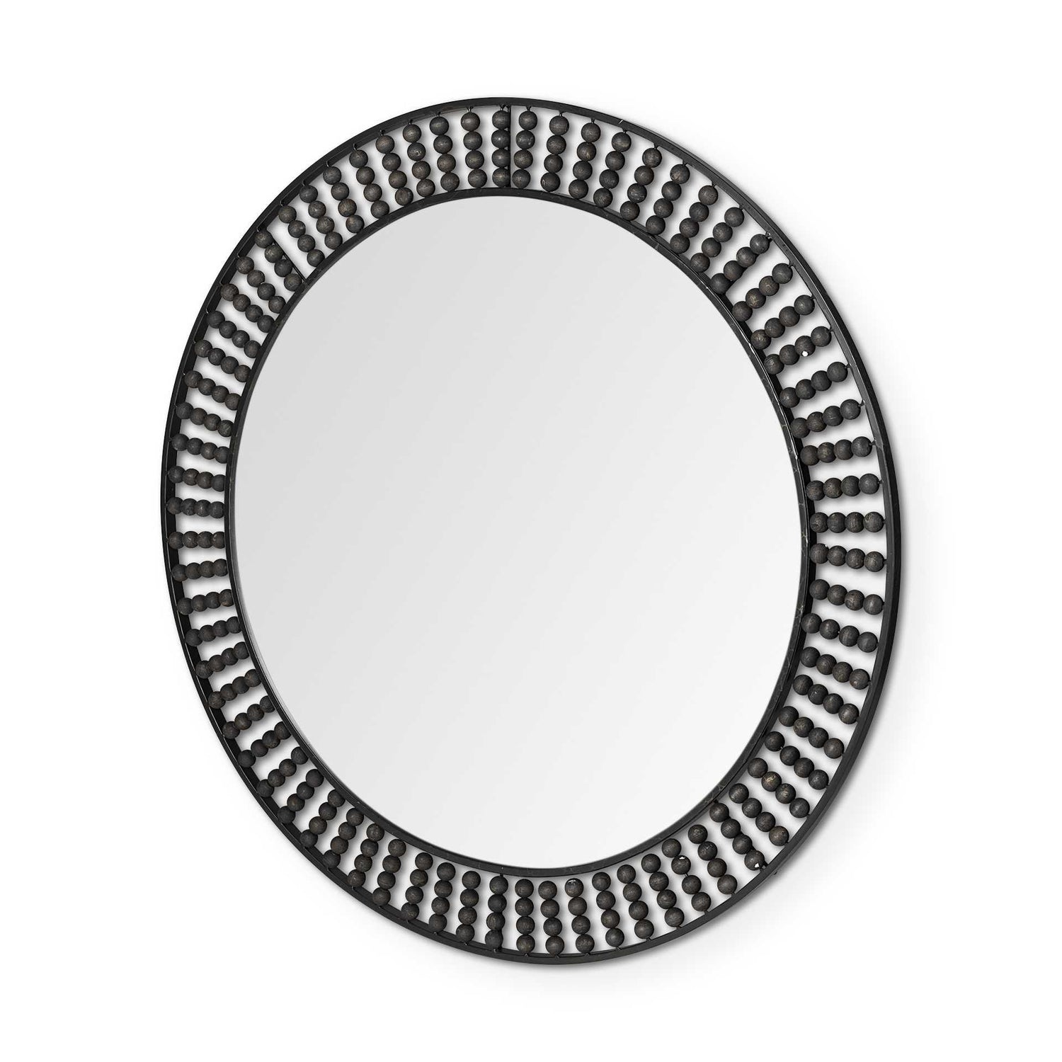 42" Round Black Metal Frame Wall Mirror With Wood Beads