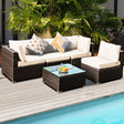 5 Pieces Cushioned Patio Rattan Furniture Set with Glass Table-White
