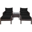 5 Pieces Patio Rattan Sofa Ottoman Furniture Set with Cushions-Black