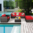6 Pcs Patio Rattan Furniture Set with Sectional Cushion-Red