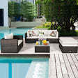 6 Pcs Patio Rattan Furniture Set with Sectional Cushion-White