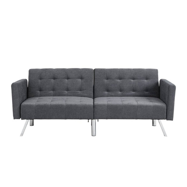 75" Dark Gray Linen Sleeper Sofa With Silver Legs