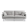 85" Light Gray Polyester Blend Convertible Futon Sleeper Sofa And Toss Pillows With Silver Legs