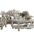 90" Gray Faux Leather Curved Sofa And Toss Pillows With Bone Legs is backordered and will ship as soon as it is back in stock.