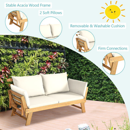 Adjustable Patio Convertible Sofa with Thick Cushion-White