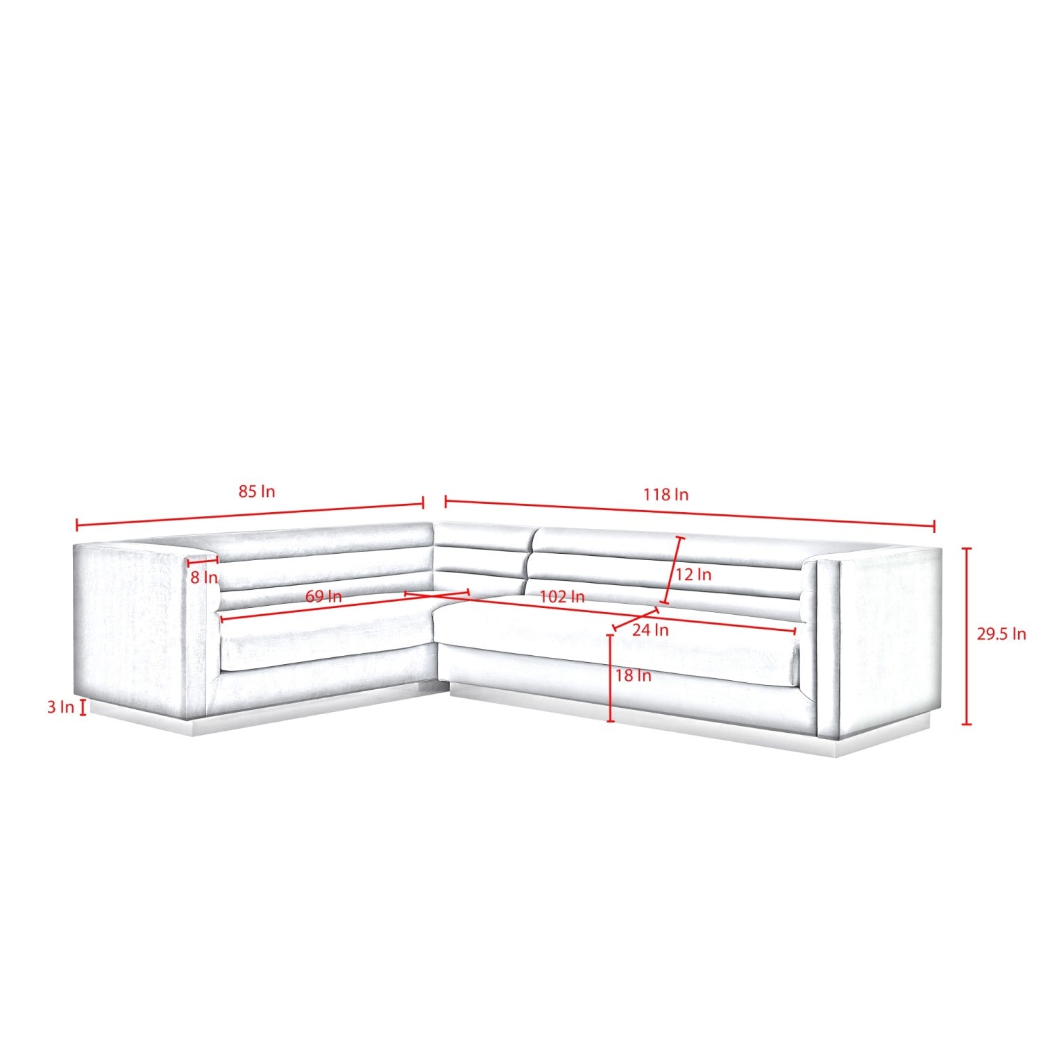 - MODERN GLAM – This stylish corner sectional sofa with modern appeal and velvet buttery soft upholstery will make a statement in any room. Horizontal channel tufting, straight lines, square arms will perfectly match with any design theme.