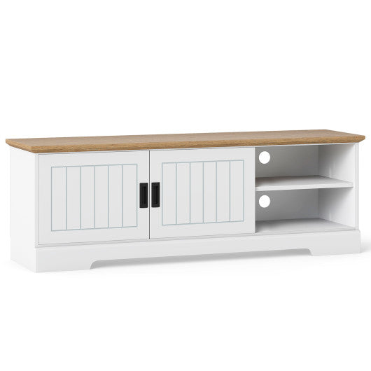 Farmhouse TV Stand for TVs up to 65 Inch with Sliding Doors and Storage Cabinets-White