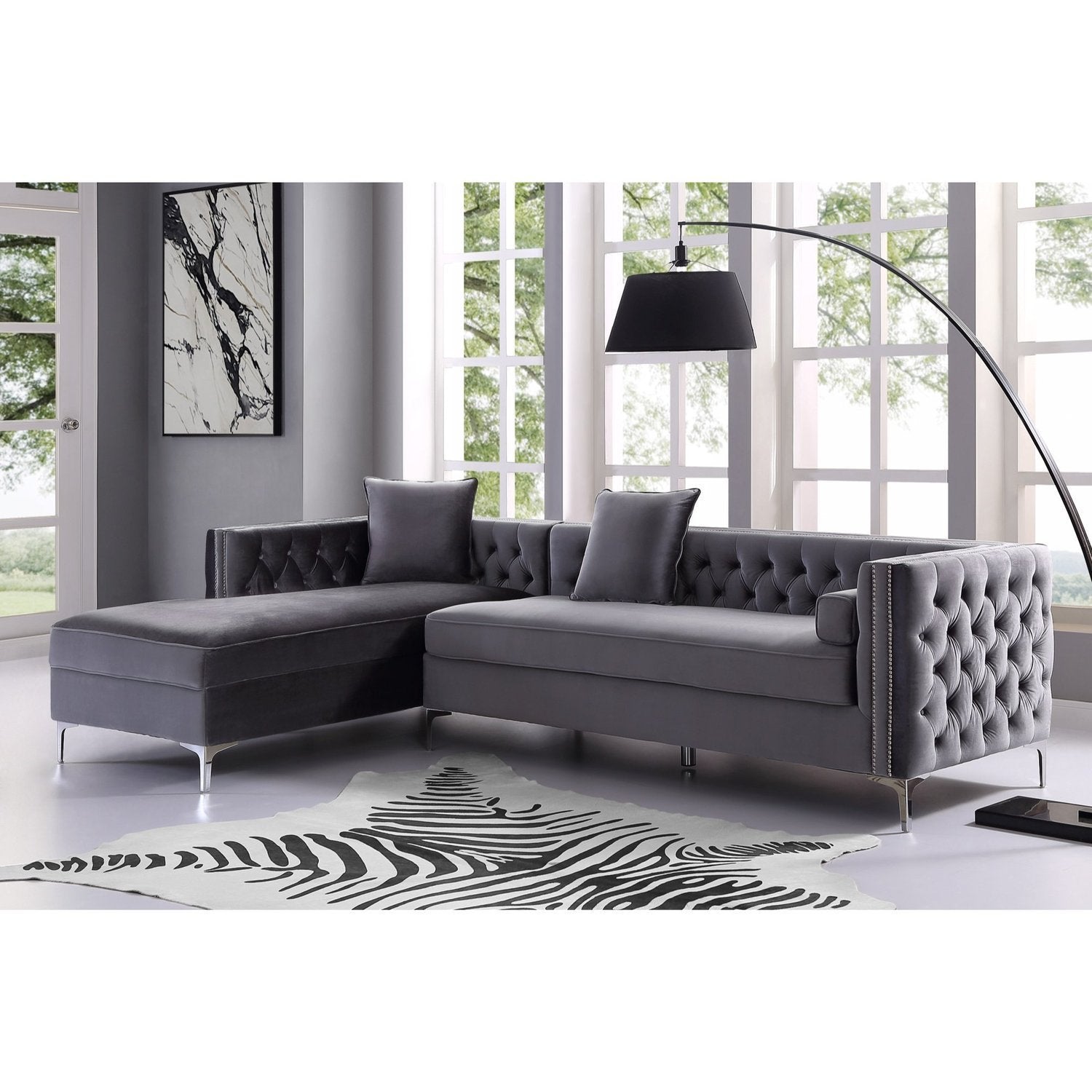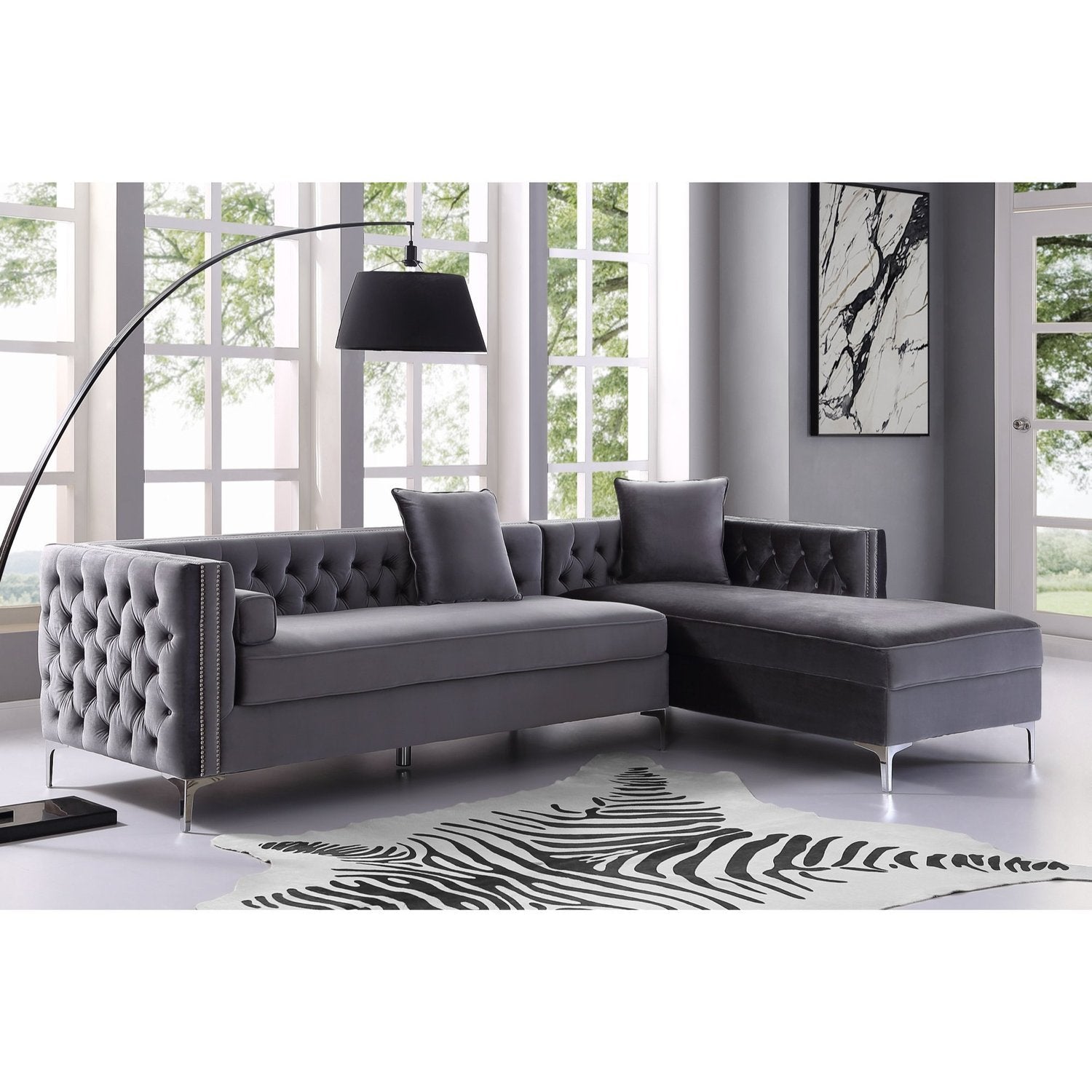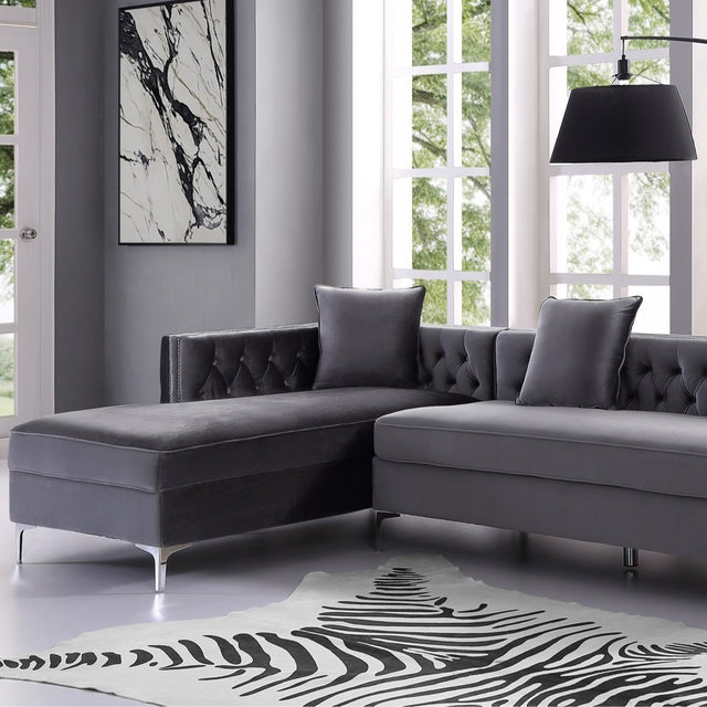 Giovanni Velvet Chaise Sectional Sofa with Storage - Grey / Left Facing is backordered and will ship as soon as it is back in stock.