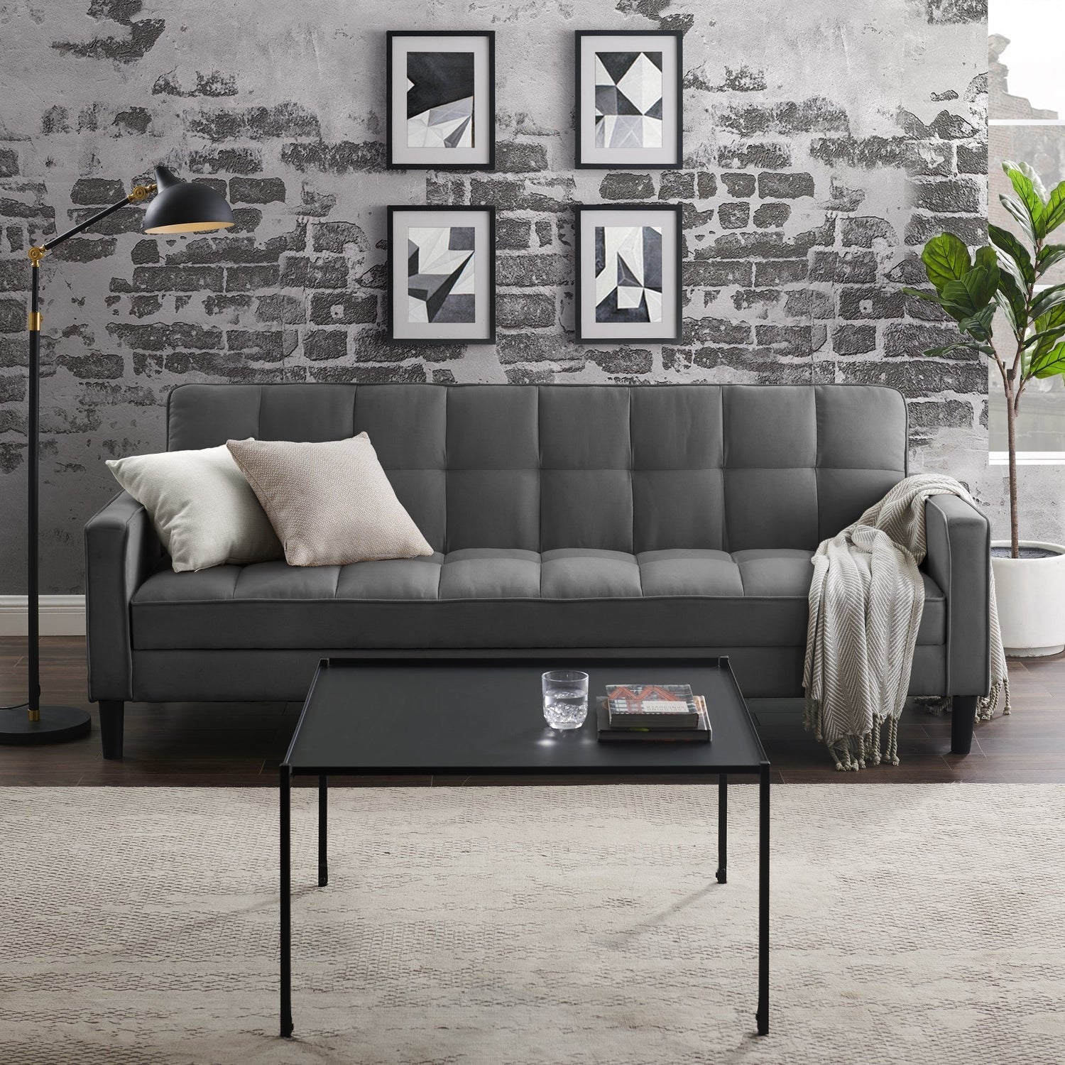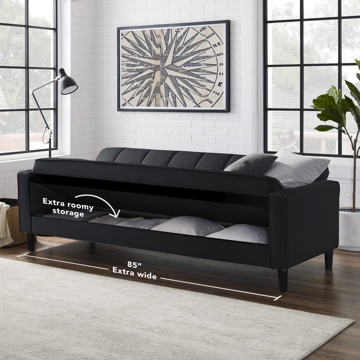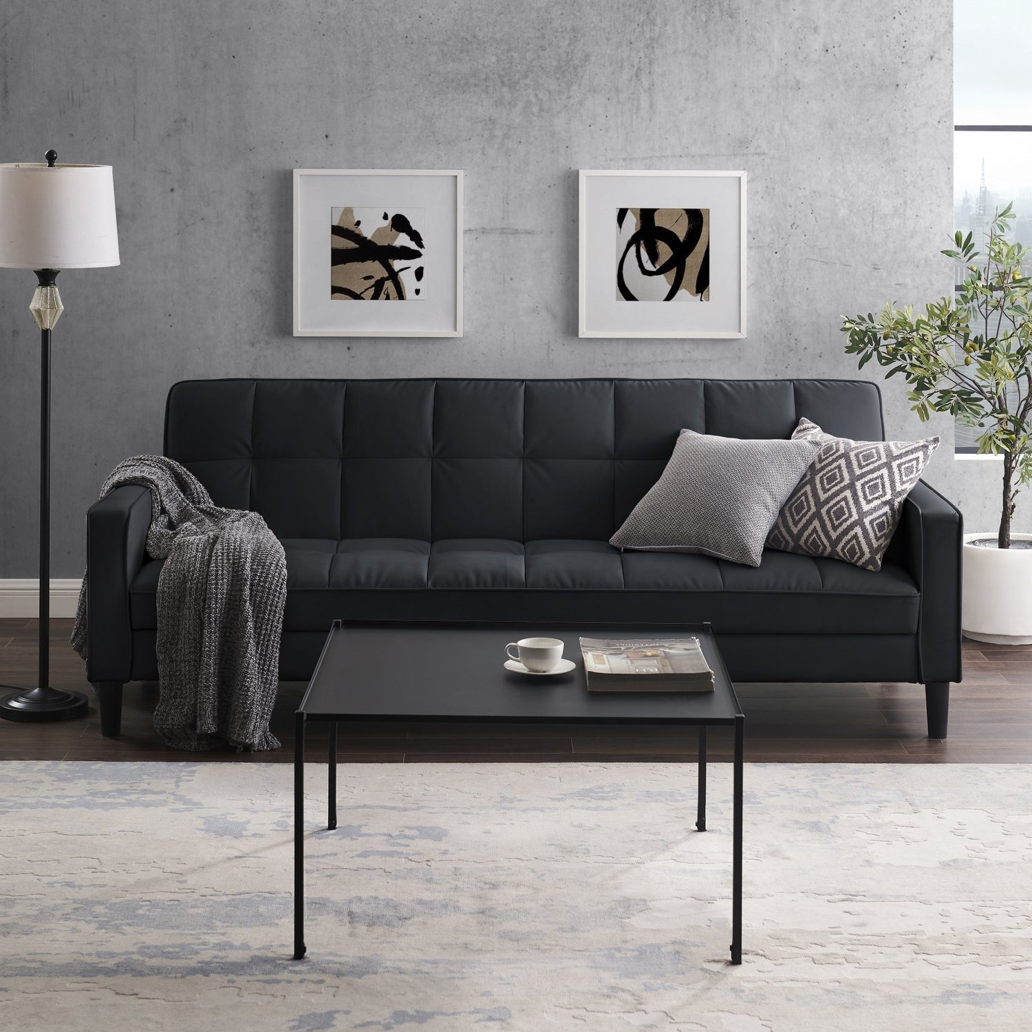 - STYLISH MODERN LOOK - Sleek, biscuit tufted upholstery finished with clean lines and black legs to look great in any setting. Set the tone for a modern space with this sleeper. Available in faux leather, linen and velvet fabric
