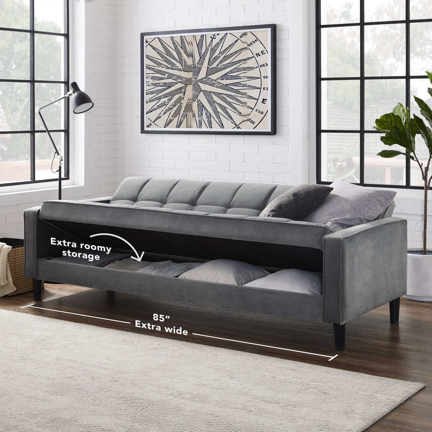 - ATTRIBUTES: Storage, Converts to Bed, Buscuit Tufted, Square Arm, 3-Seat