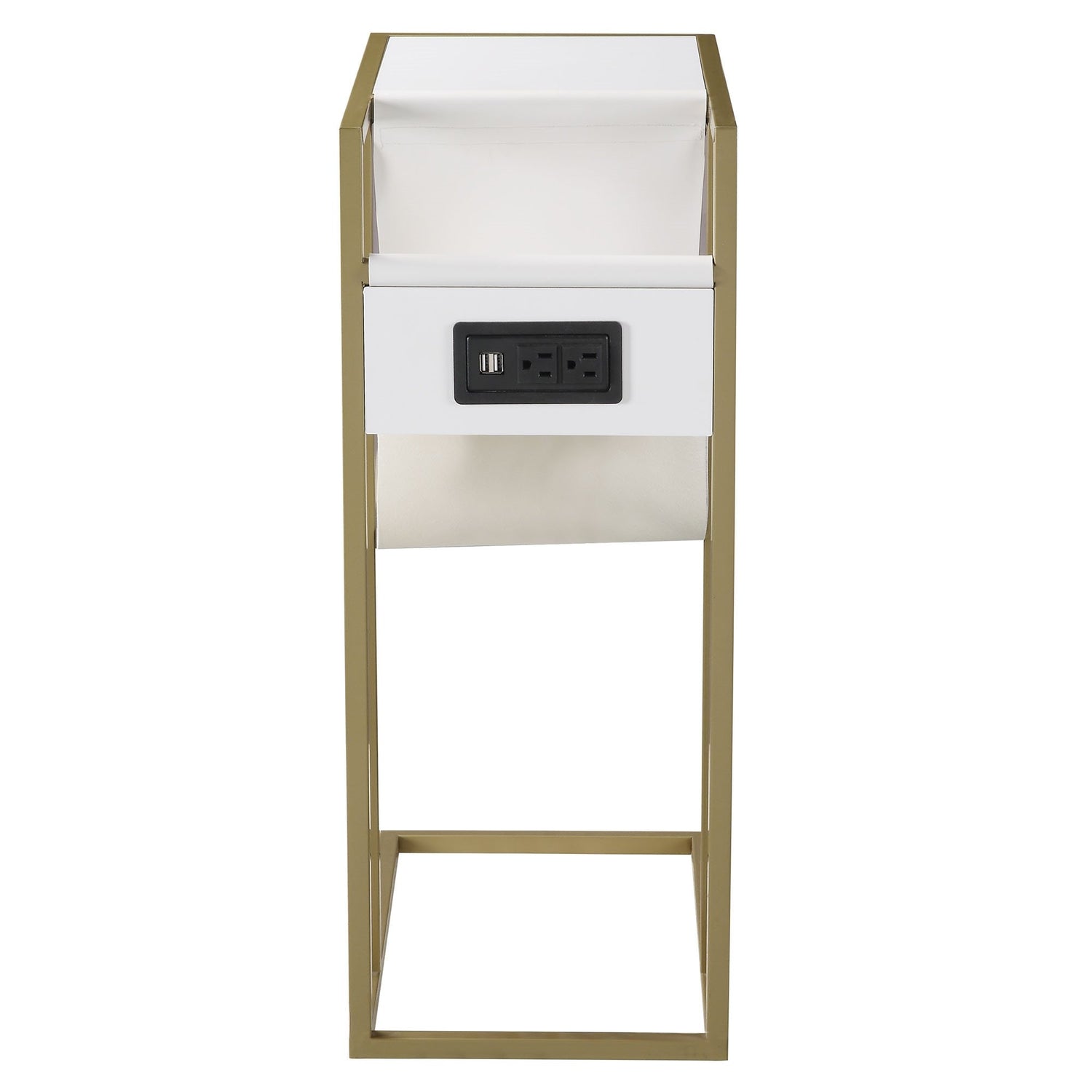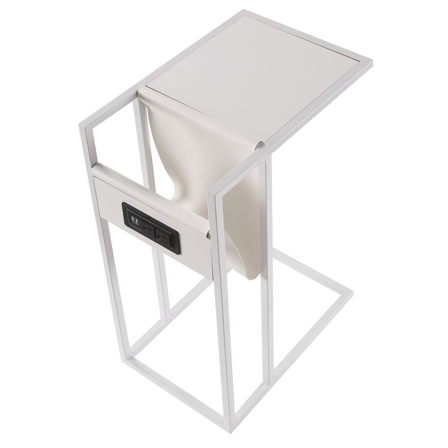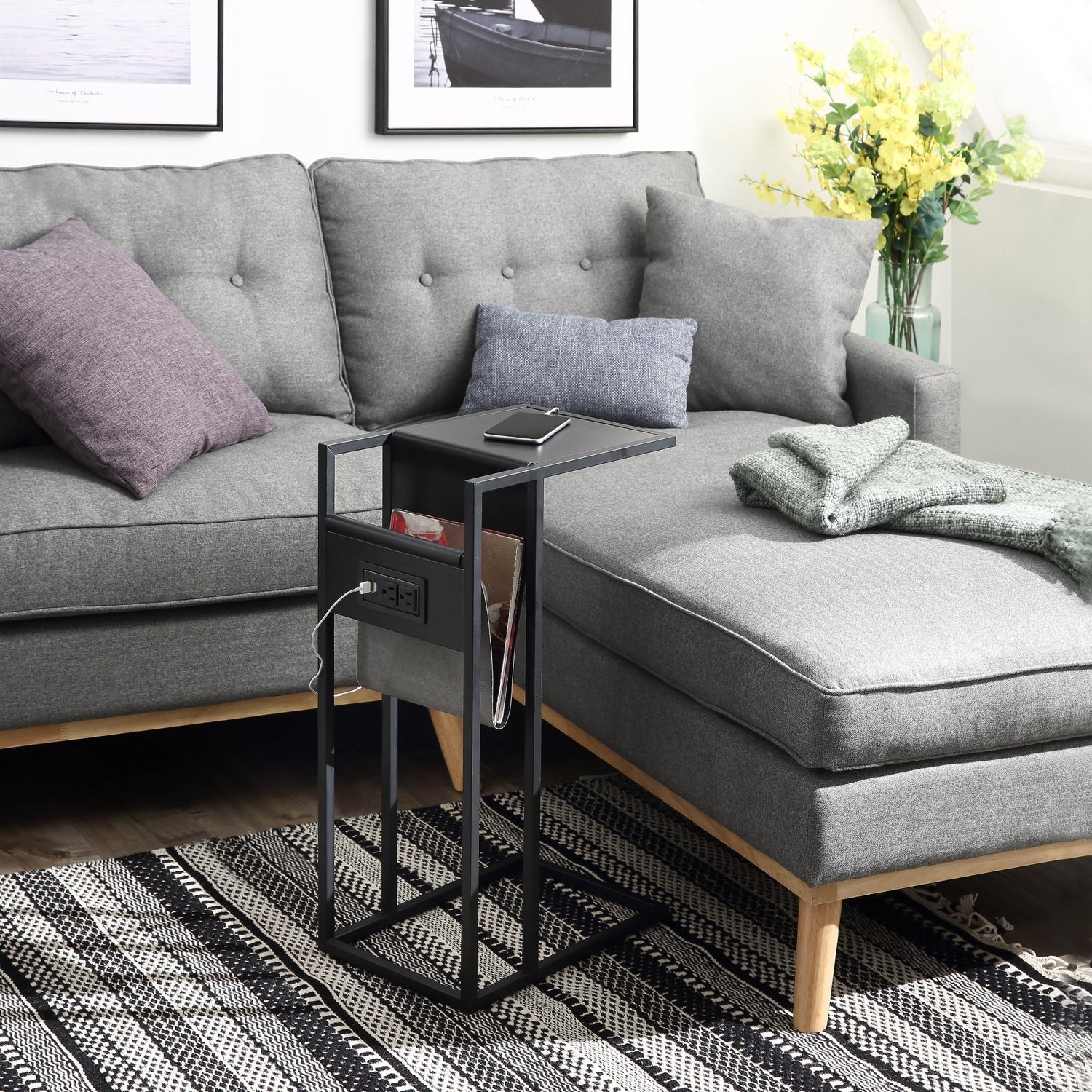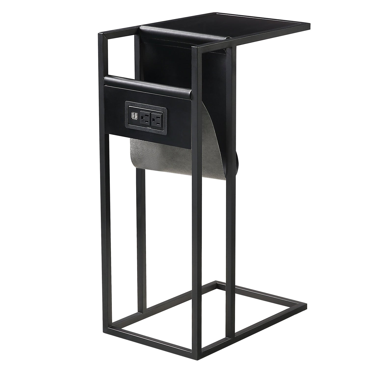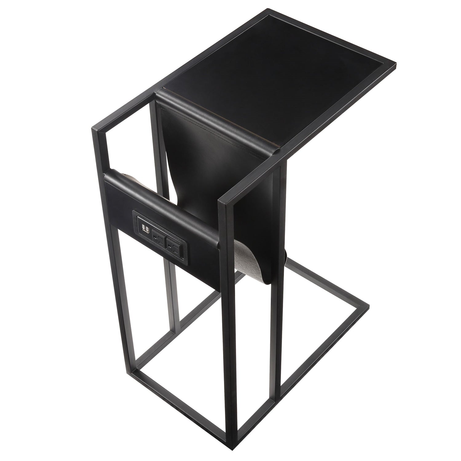 - CONVENIENT CHARGING STATION - Constructed of a sturdy metal base the product is equipped with a magazine holder that can be used to place newspapers, books, magazines. Also equipped with 2 USB charging ports and 2 built in outlets, which can easily charge your laptop or phone while sitting on your sofa watching TV.