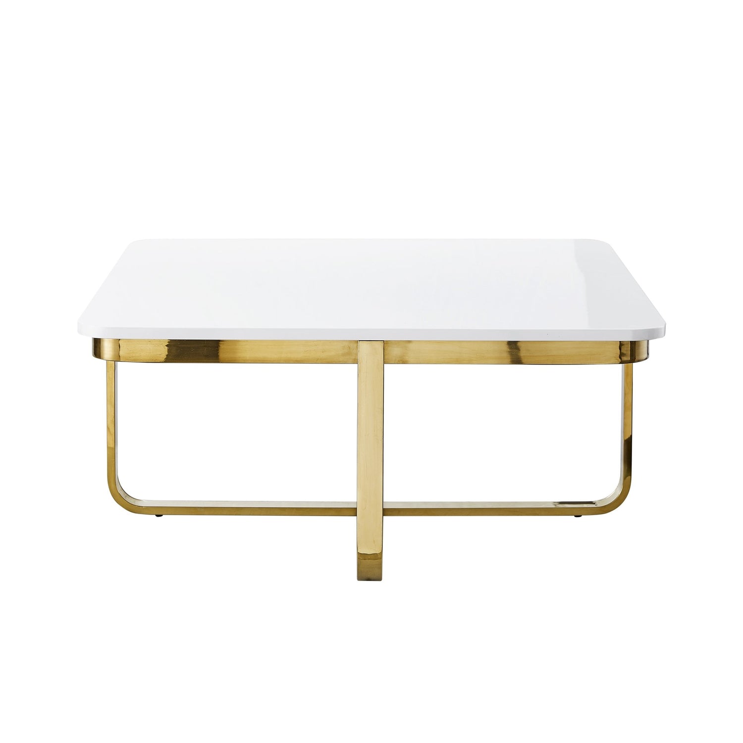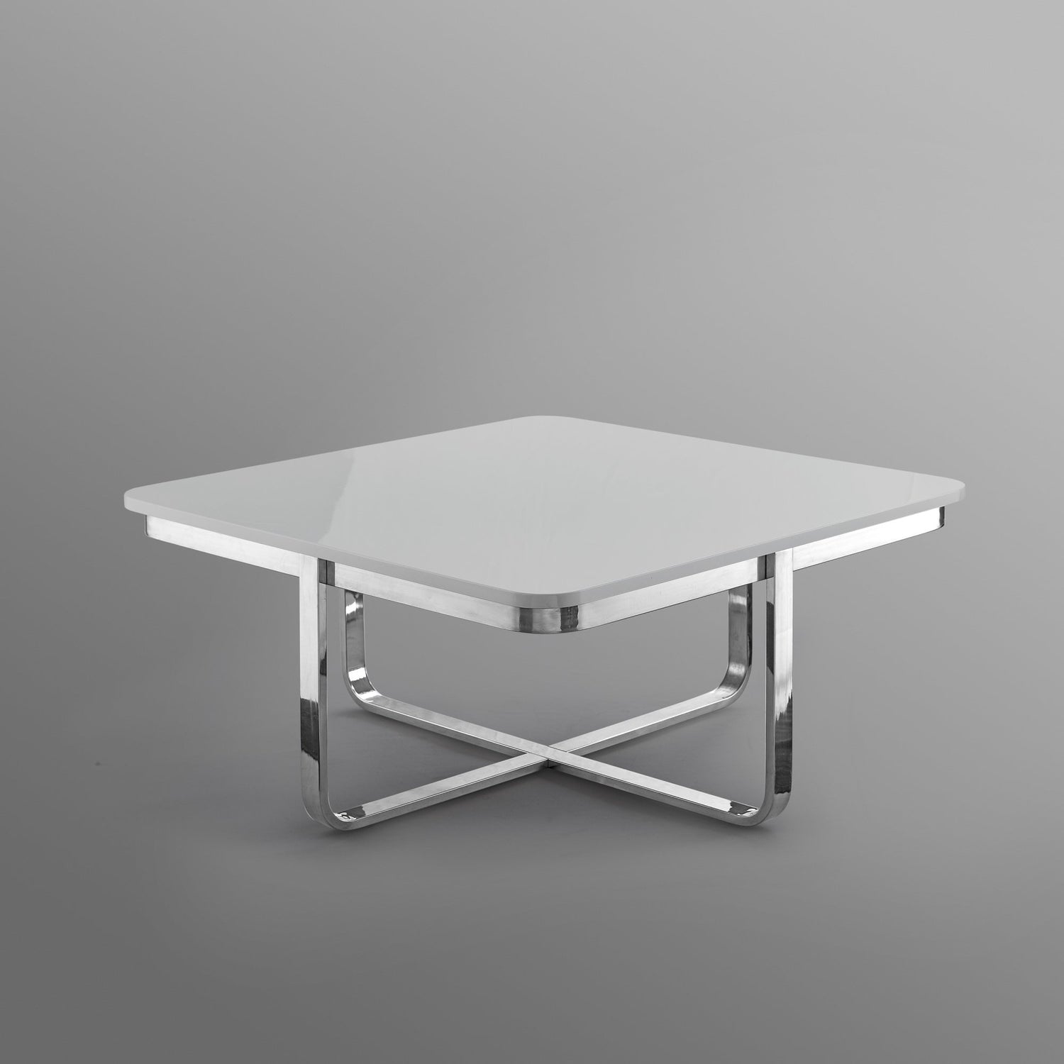 Bring contemporary modern style into your home. This coffee table is a perfect complement to a variety of interior decor. It is constructed of MDF top with a high gloss lacquer finish and stainless steel shiny clean-lined base. Show off favorite decorative items, let it hold a warm cup of coffee while reading or let it anchor stacks of magazines next to your lovely sofa. This modern coffee table will be a favorite piece for years to come.