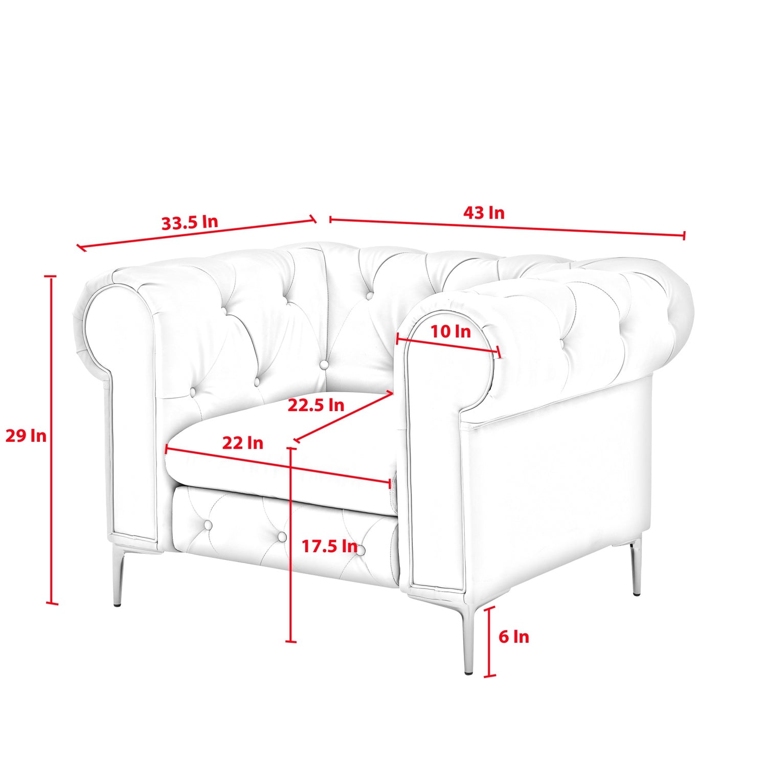 - ATTRIBUTES: Button Tufted, Y-leg, Rolled Arms, Sinuous Springs