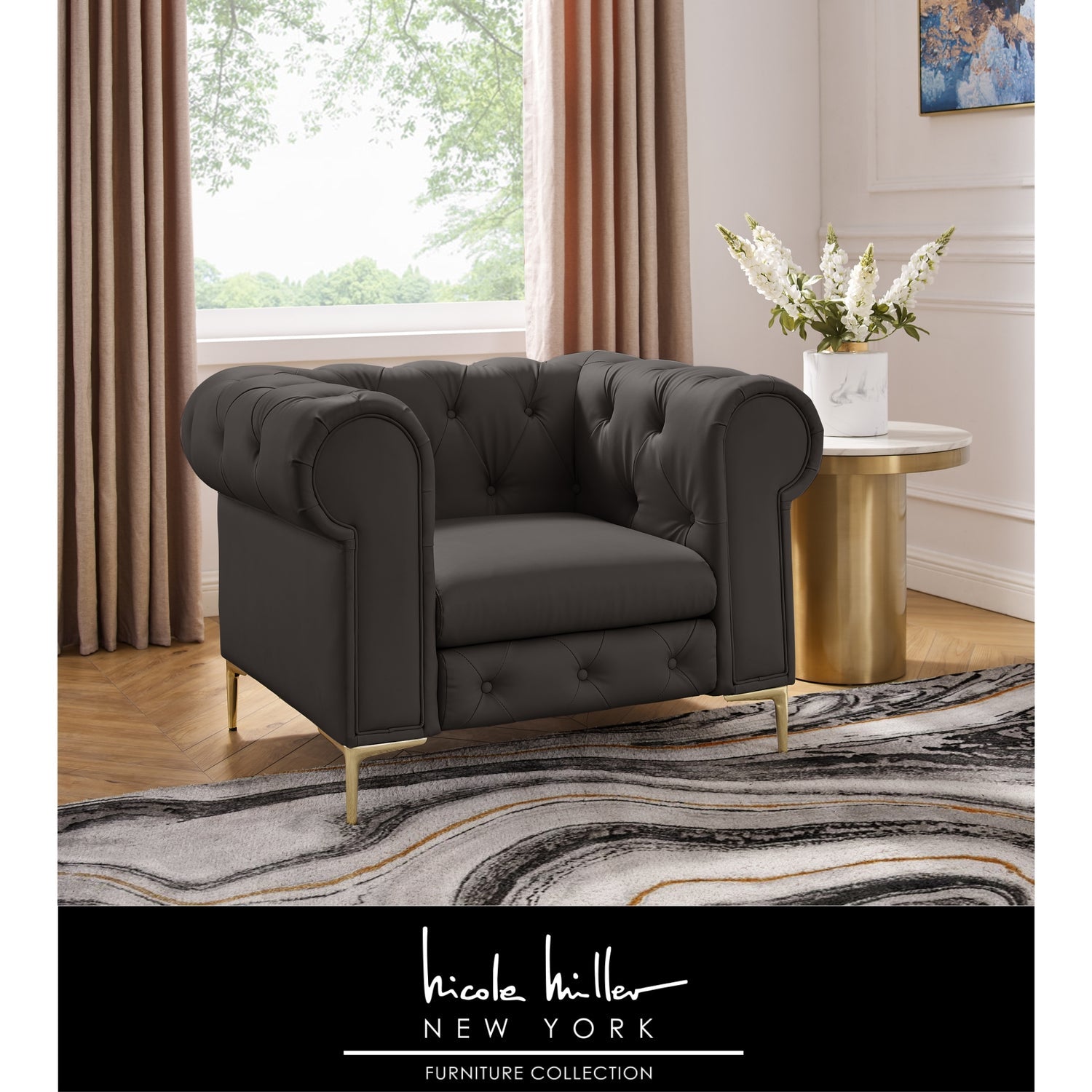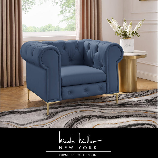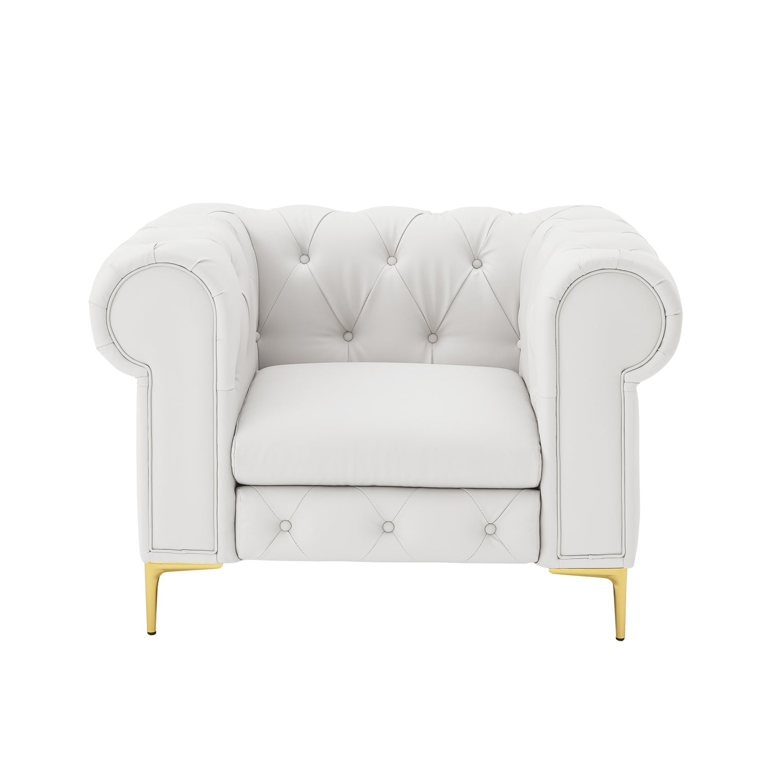 - CLASSIC DESIGN - Bring an understated appeal to your aesthetic with this eye-catching chair. Featuring a chesterfield style, modernized with a golden Y-leg, this accent chair makes a subtle addition to any modern, traditional, transitional style.