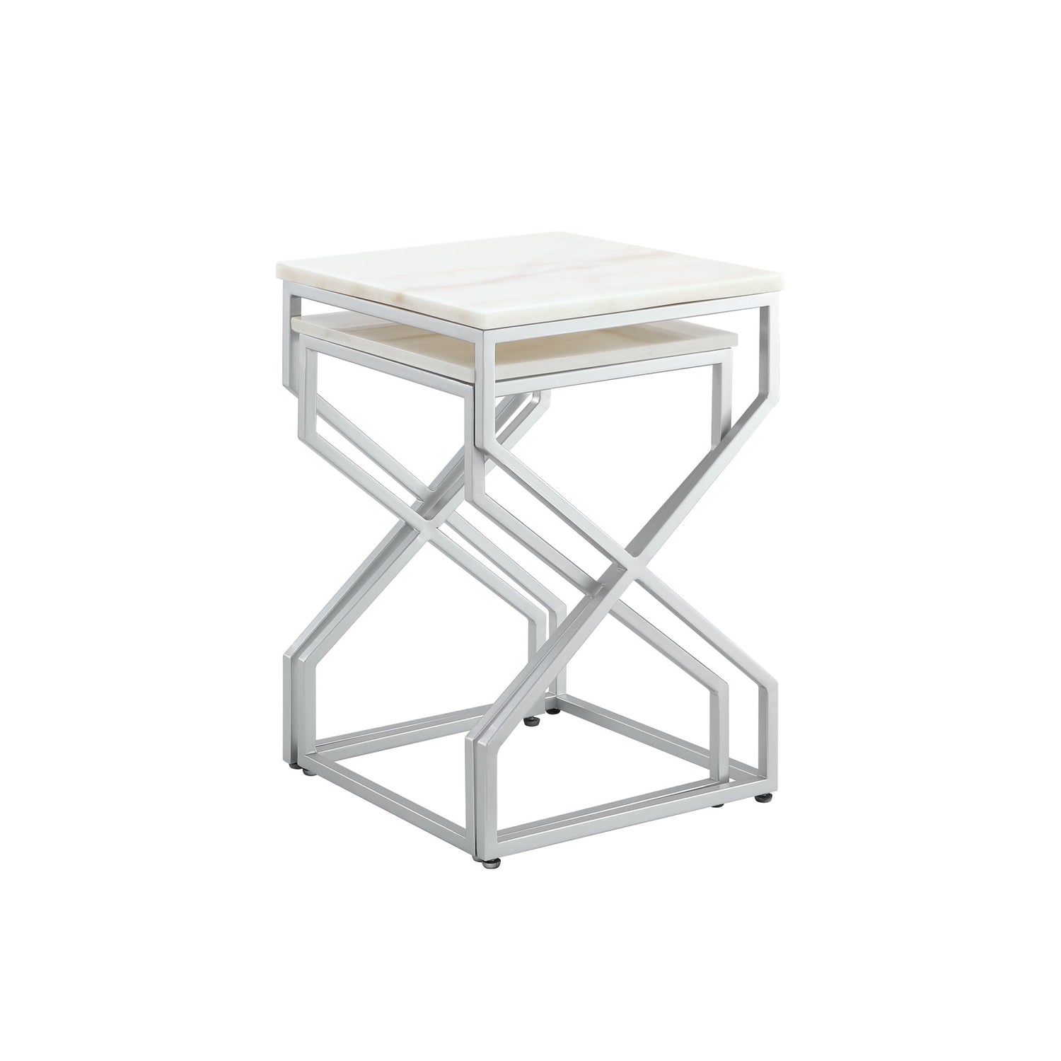 Bring contemporary modern style into your home. This metal x-cross legs accent table is a perfect complement to a variety of interior decor. Use it as an end table in the living room, as a sleek side table in the bedroom or as a display table in the entryway or home office. Show off favorite decorative items, let it hold a warm cup of coffee while reading or let it anchor a bold lamp and magazines next to a favorite chair. With a marble top and metal base finished in classic matte gold or silver, this modern side table will be a favorite piece for years to come.