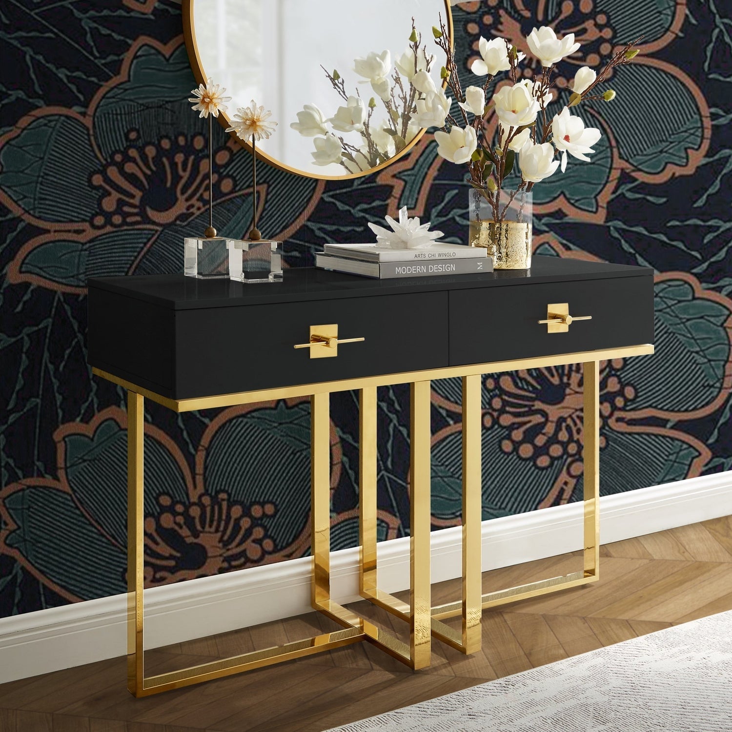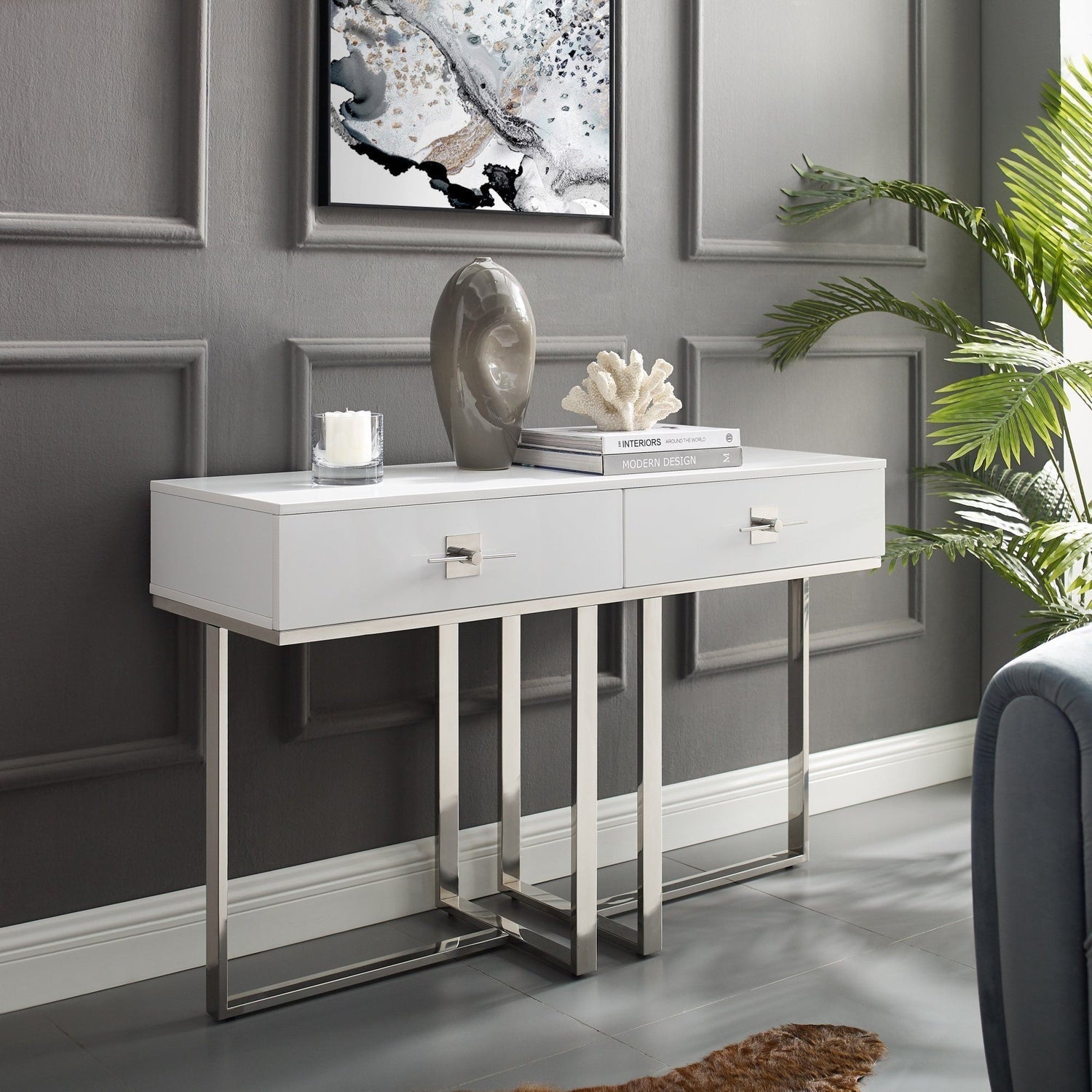 - ELEGANT DESIGN - This unique luxe console table with polished stainless steel geometric base and high gloss top infuses an exquisite accent to your main furniture to create that modern cozy atmosphere in your home and enhances the surrounding décor.
