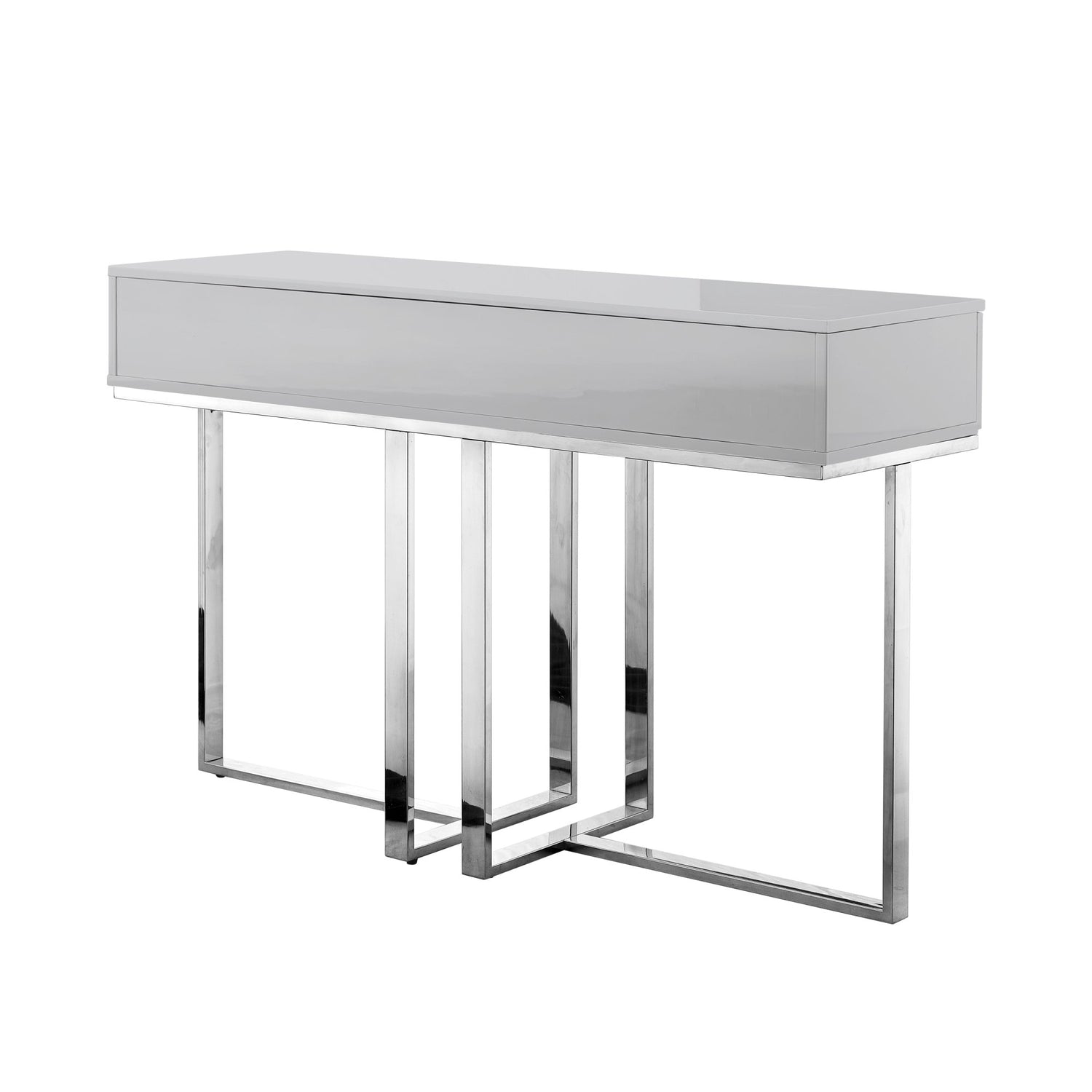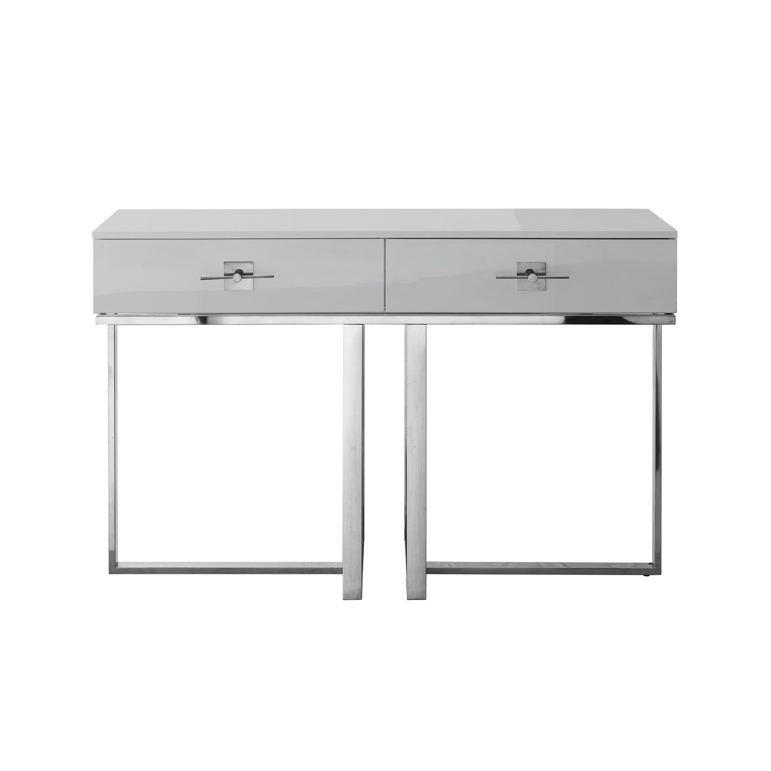 - ATTRIBUTES: 2 Drawers, High Gloss Lacquer Finish, Polished Stainless Steel Base