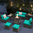 Outdoor 9 Pieces Patio Furniture Set with 50 000 BTU Propane Fire Pit Table-Turquoise