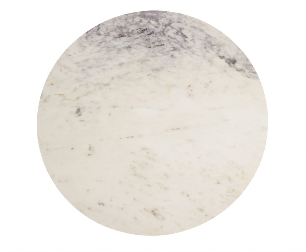 32" Ivory and Brass Genuine Marble and Metal Round Frame Coffee Table