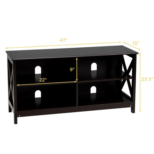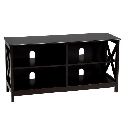 Wooden TV Stand Entertainment for TVs up to 55 Inch with X-Shaped Frame-Brown