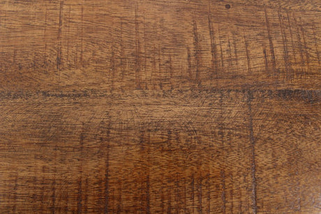 72" Brown and Brass Solid Wood Distressed Six Leg Console Table With Four Drawers