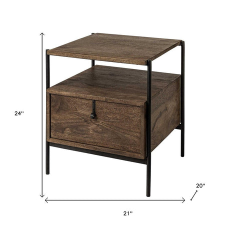 20" Brown Distressed Solid Wood Hexagonal Top Table