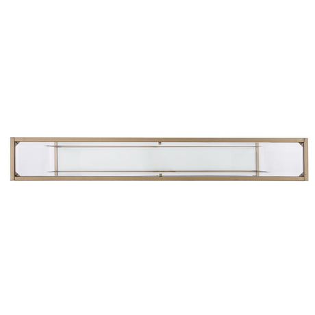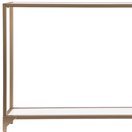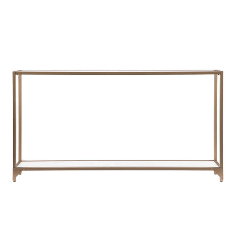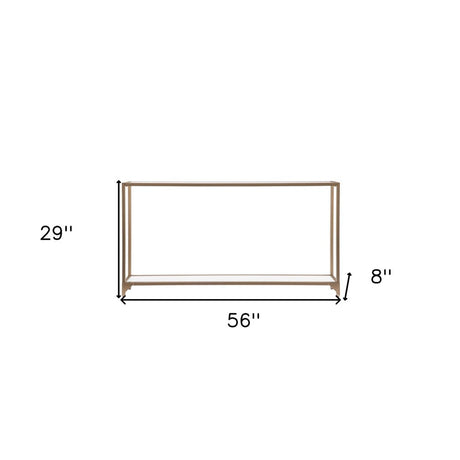 56" Clear and Gold Glass Mirrored Frame Console Table With Shelves