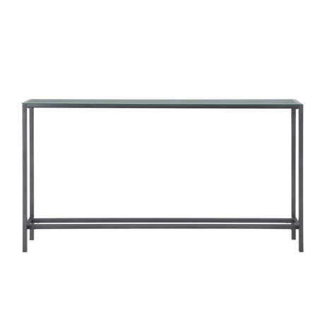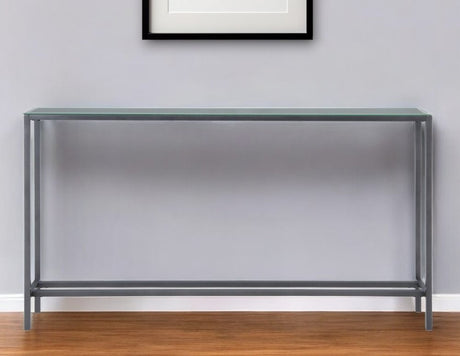 56" Silver and Gunmetal Mirrored Glass Console Table