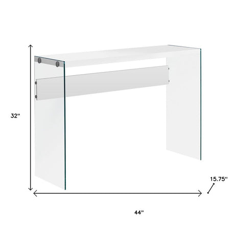 15.75" X 12" X 24" Silver Clear Metal Tempered Glass Accent Table
