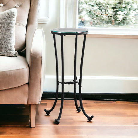 24" Black And Clear Glass And Metal Round End Table With Shelf