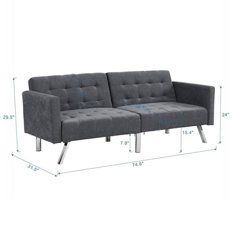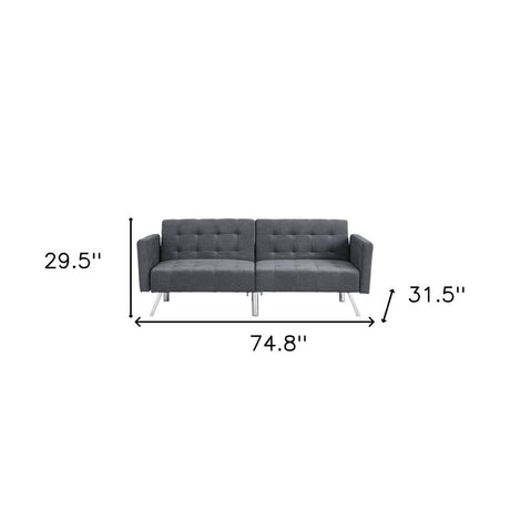 75" Dark Gray Linen Sleeper Sofa With Silver Legs