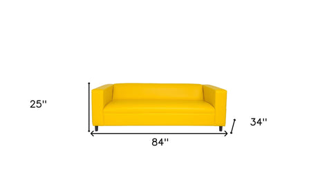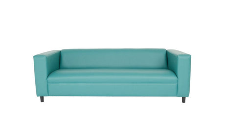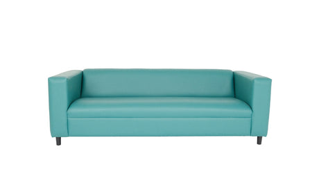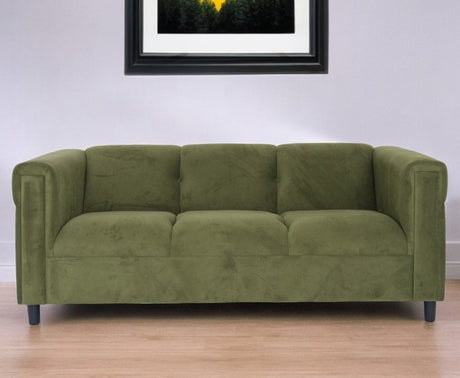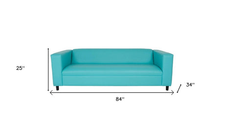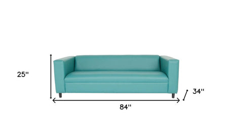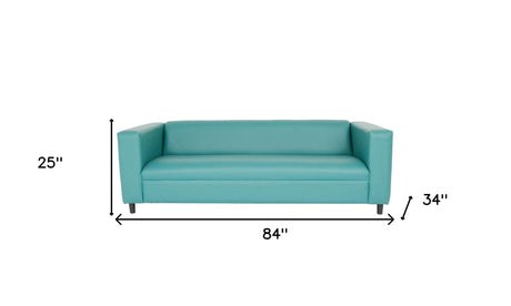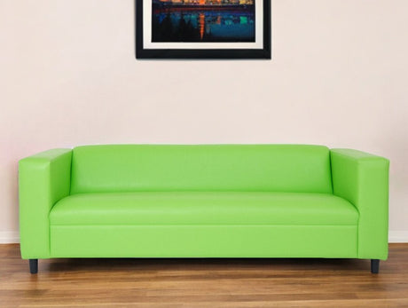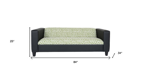 84" Green and White Faux Leather Geometric Sofa With Black Legs