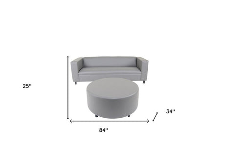 84" Gray Faux Leather Sofa With Ottoman With Black Legs