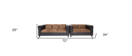 Two Piece Brown Faux Leather and Chenille Seating Set