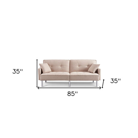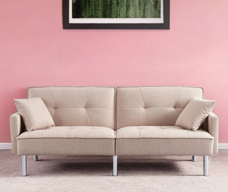 Regular price $691.89Unit price /UnavailableLow stock (13 units)85" Beige Polyester Blend Convertible Futon Sleeper Sofa And Toss Pillows With Silver Legs