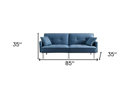 Regular price $691.89Unit price /UnavailableLow stock (18 units)85" Blue Polyester Blend Convertible Futon Sleeper Sofa And Toss Pillows With Silver Legs