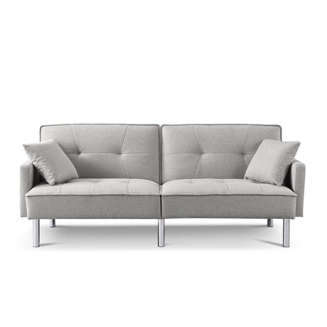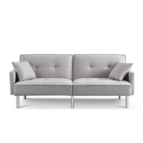 Regular price $691.89Unit price /UnavailableIn stock85" Light Gray Polyester Blend Convertible Futon Sleeper Sofa And Toss Pillows With Silver Legs