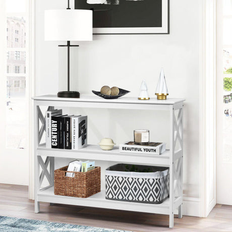 3-Tier Console X-Design Sofa Side Accent Table-White
