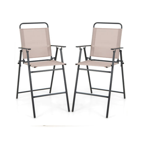 Set of 2 Patio Folding Bar-Height Chairs with Armrests and Quick-Drying Seat-Beige