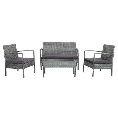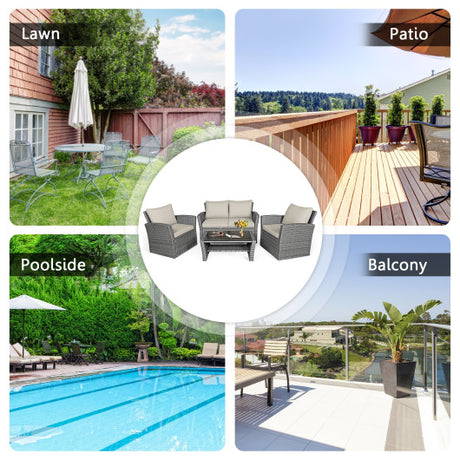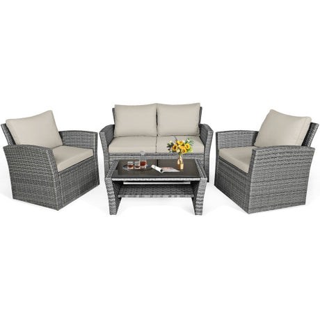 4 Pieces Outdoor Rattan Conversation Set with Comfortable Cushion