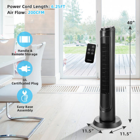 40 Inch Tower Fan with Remote 75˚ Oscillating Fan with 3 Wind Modes and 4 Wind Speeds-Black