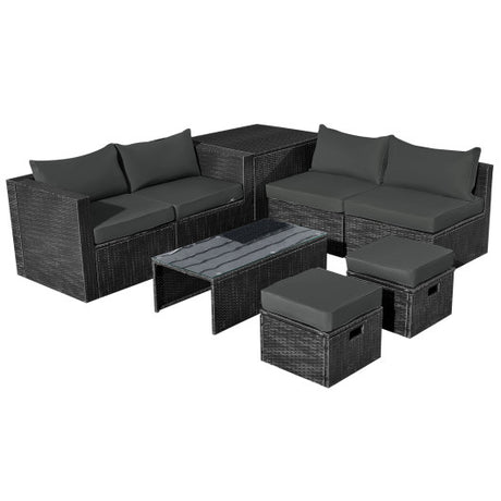 8 Pieces Patio Rattan Storage Table Furniture Set-Gray