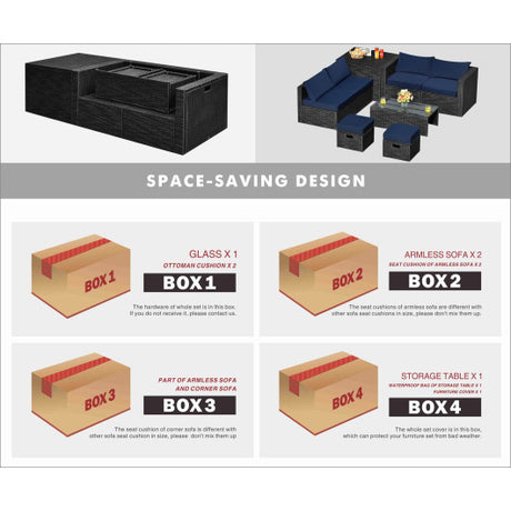 8 Pieces Patio Rattan Storage Table Furniture Set-Navy