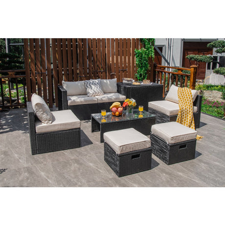 8 Pieces Patio Rattan Storage Table Furniture Set-Black