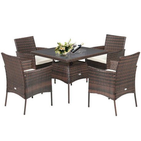 5 Pieces Cushioned Patio Rattan Furniture Set with Glass Table-Black