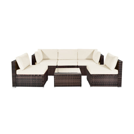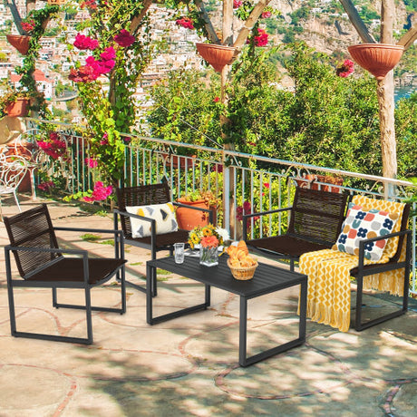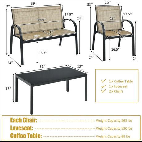 4 Pieces Patio Furniture Set with Glass Top Coffee Table-Brown