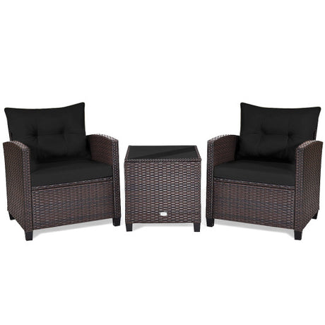 3 Pcs Patio Conversation Rattan Furniture Set with Cushion-Black