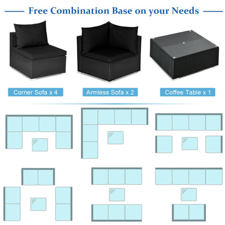 6 Pcs Patio Rattan Furniture Set with Sectional Cushion-Black