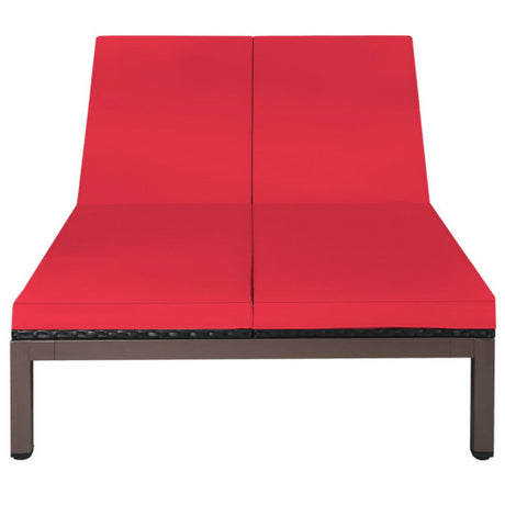 2-Person Patio Rattan Lounge Chair with Adjustable Backrest-Red